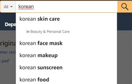 検索で韓国(korean)と入力すると、候補にならぶのも、コスメ関係がずらりです。