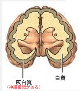 灰白質とは、脳のうちで神経細胞体が存在している部位を指します。脳の中でも高度な処理を行う部分です。